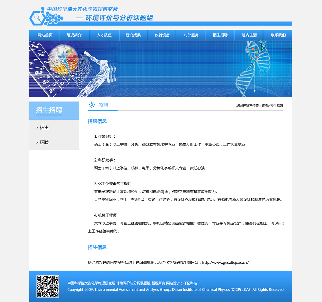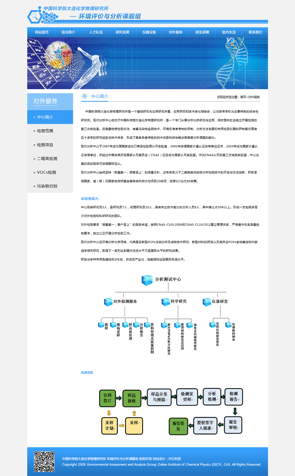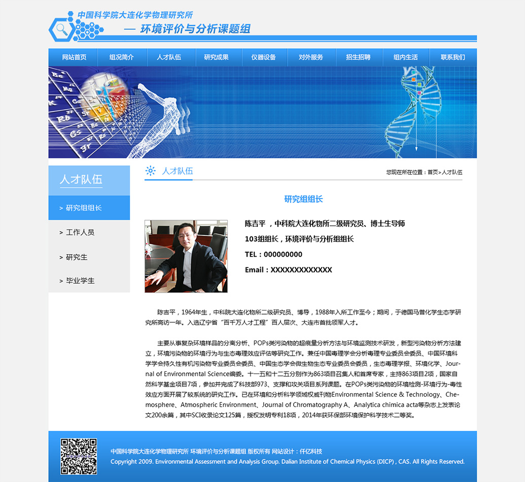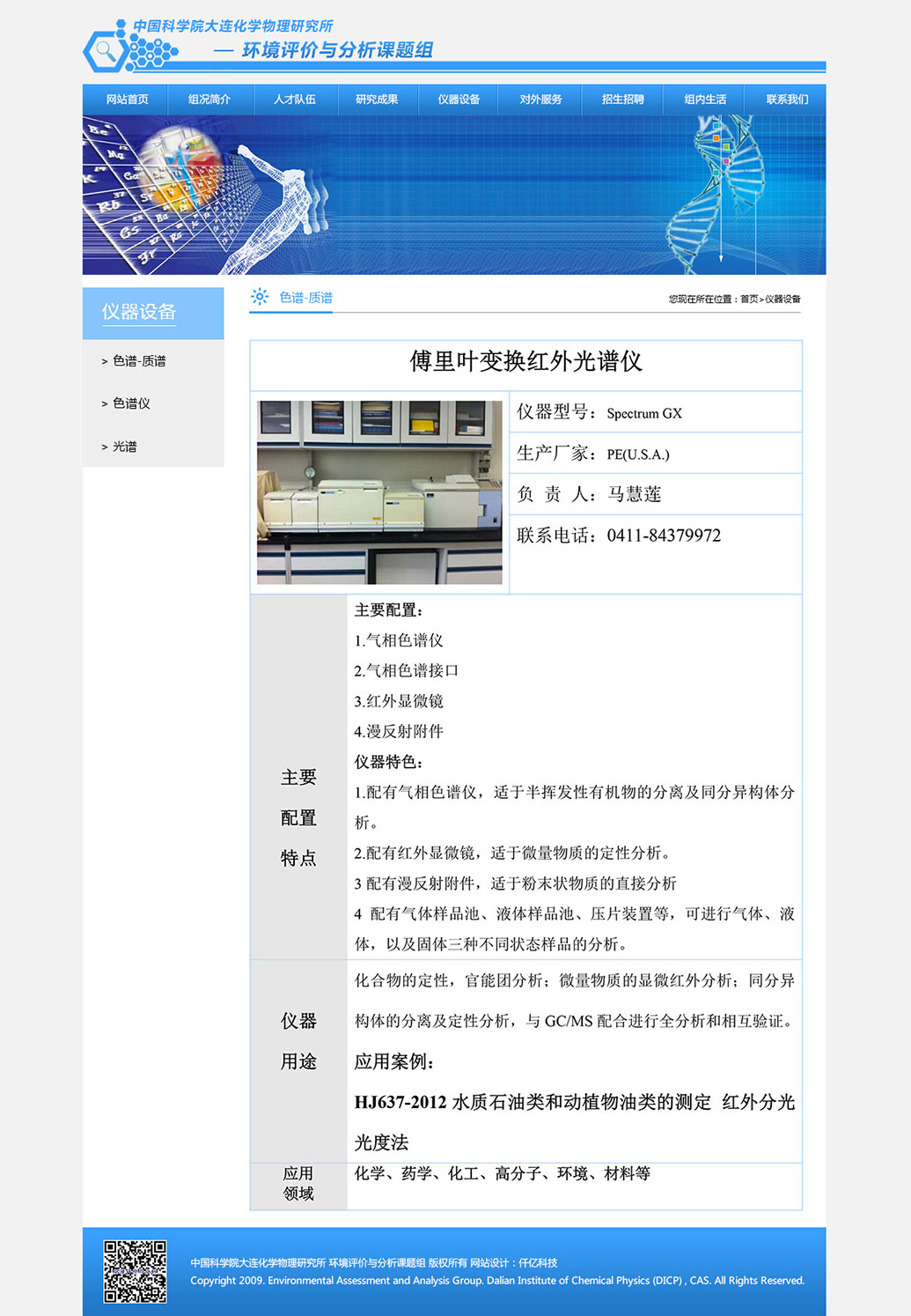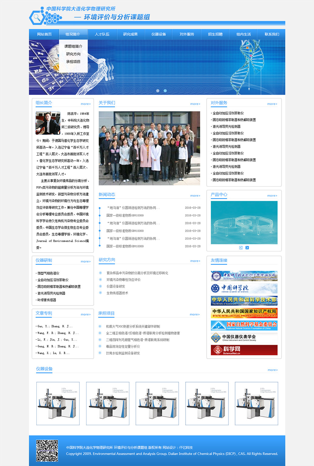 中國科學(xué)院大連化學(xué)物理研究所環(huán)境評價(jià)與分析研究組(103組)是一個(gè)集基礎(chǔ)研究、儀器研發(fā)及對外服務(wù)于一體的綜合科研平臺,位于大連化學(xué)物理研究所生物技術(shù)樓(26#樓),現(xiàn)有研
