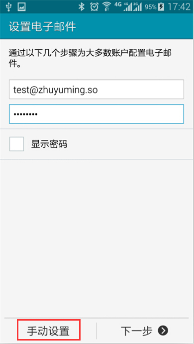 2.填寫郵箱的 email 地址及郵箱密碼,建議單擊 手動(dòng)配置 :