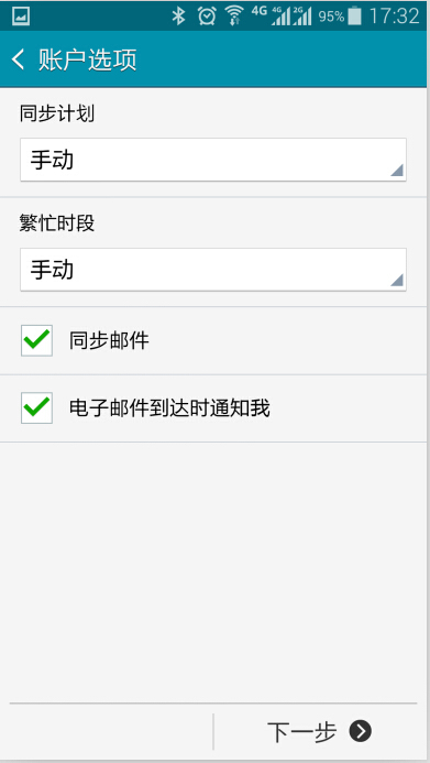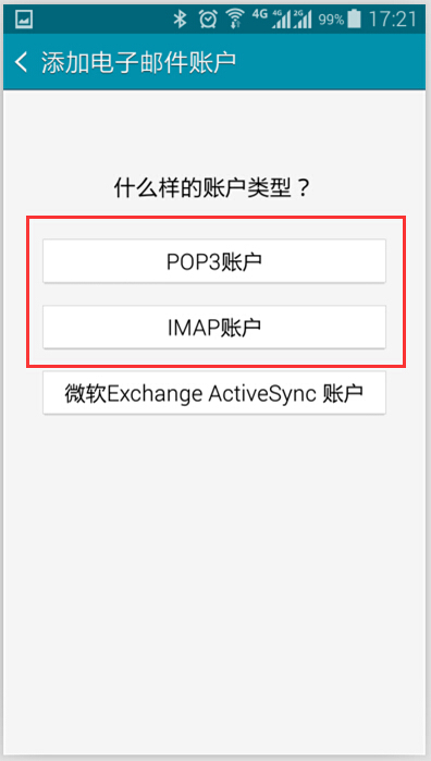 此處以三星(系統(tǒng)版本4.4.2)為例,介紹下使用安卓系統(tǒng)自帶的客戶端如何設(shè)置 POP / IMAP 協(xié)議方式方法。