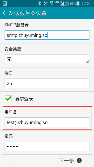 填寫 SMTP 用戶名,請(qǐng)完整填寫 email 地址