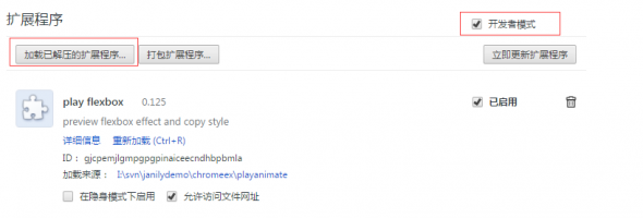 <div class="resule-code"> <pre class="code-display"> <code class="code-lang"> {{ cssMsg }} </code> </pre> </div>開發(fā)好之后,可以直接在chrome中運(yùn)行來(lái)調(diào)試。打開擴(kuò)展面板,勾選開發(fā)者模式,然后加載剛開發(fā)擴(kuò)展所在的目錄就可以直接運(yùn)行了。