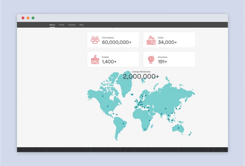 什么樣的顏色適用于風(fēng)格指南呢?讓我們來看看這個比較容易理解的 Airbnb(一個旅館預(yù)定網(wǎng)站) 的例子。Airbnb的強(qiáng)調(diào)色,是可以顯示公司住所地址的紅色(英: Rausch)。綠松石色(英: Kazan)是輔助色、背景色則使用了兩種灰色(英: Foggy / HOF)。