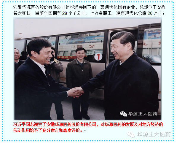 習近平同志視察安徽華源正大醫(yī)藥有限公司